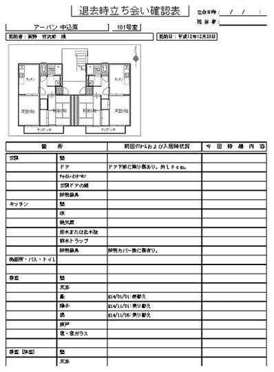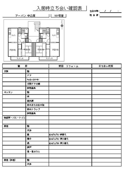 入居や退去時の確認表作成・部屋や共用部分のリフォームなどの修繕記録の情報管理が行えます。